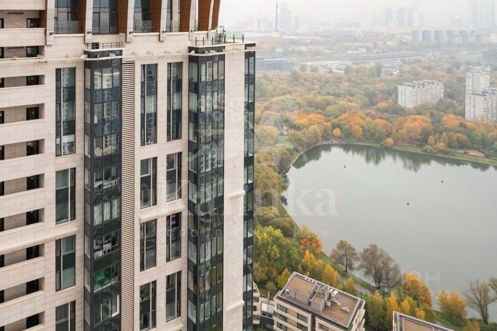 Из окон квартиры открывается красивый вид на пруд и Москва-Сити.