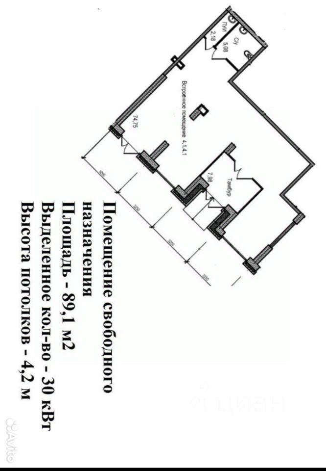 О помещении: Общая площадь 89.1-кв.м. Высота потолка 4.20 м. Два отдельных входа с улицы. Электричество увеличено до 30 кВт. Просторные панорамные окна от пола и до потолка. На полу уложен серый керамогранит по всему периметру (смотрите фото). Фасад, высокая проходимость. Кирпичный новый дом комфорт класса.