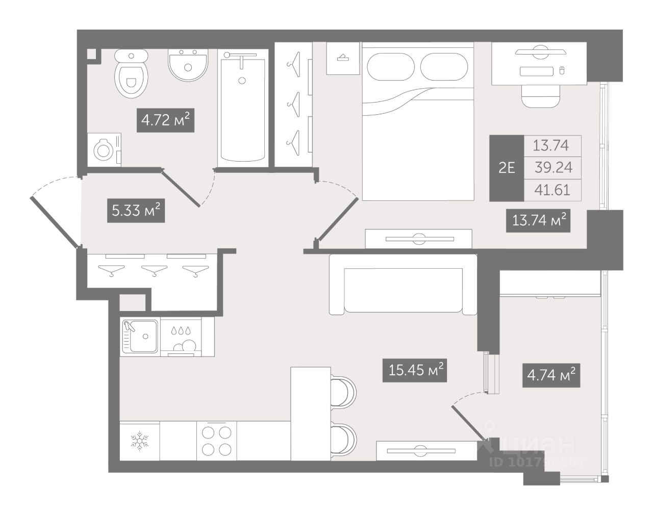 Прямая продажа от застройщика — только в этом месяце. 1-к квартира в клубном доме N8 на 2-м этаже. Общая площадь 41,61. Без отделки.