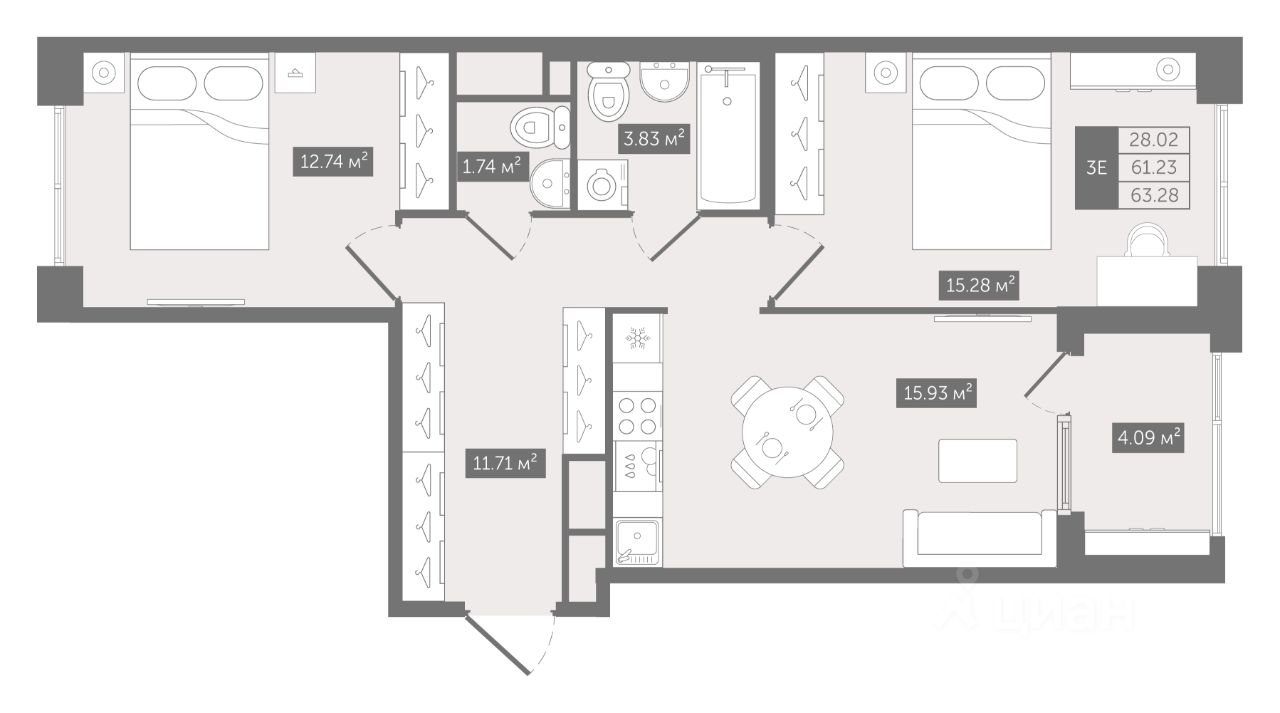 Прямая продажа от застройщика — только в этом месяце. 2-к квартира в клубном доме N8 на 9-м этаже. Общая площадь 63,28. Без отделки.