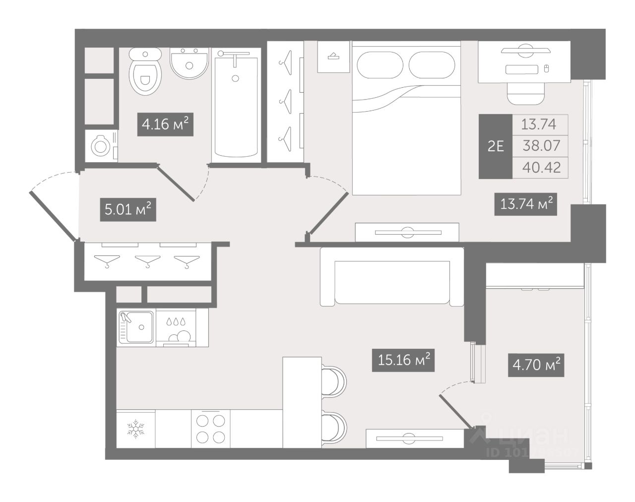 Прямая продажа от застройщика — только в этом месяце. 1-к квартира в клубном доме N8 на 5-м этаже. Общая площадь 40,42. Без отделки.
