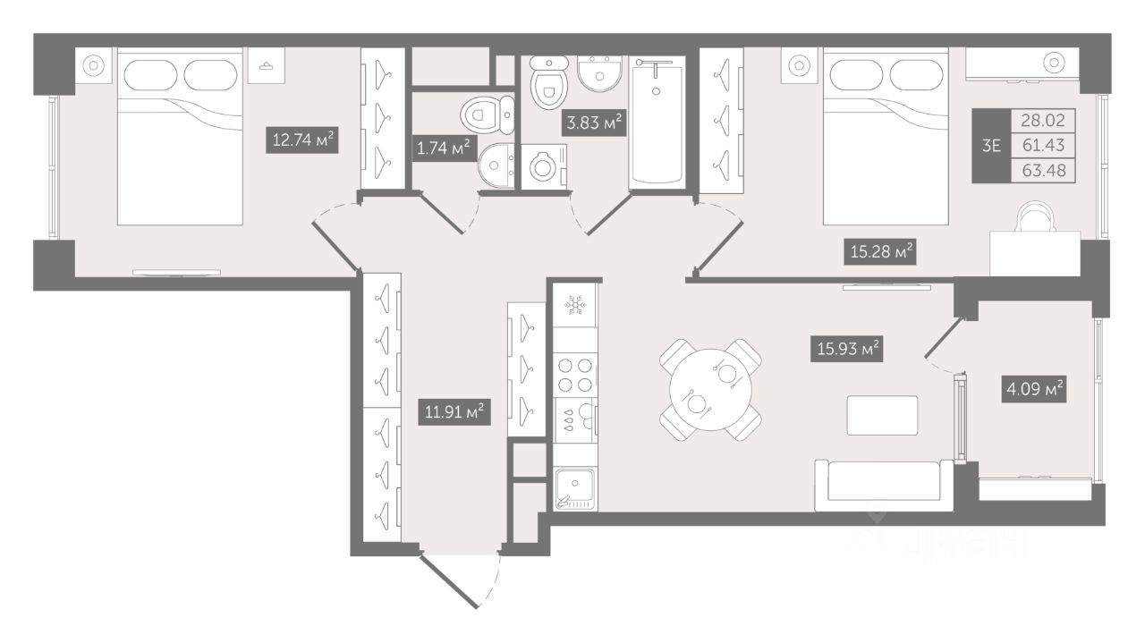 Прямая продажа от застройщика — только в этом месяце. 2-к квартира в клубном доме N8 на 5-м этаже. Общая площадь 63,48. Без отделки.