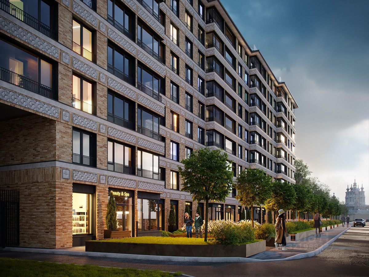 В облике дома отражены характерные черты петербургской исторической архитектуры: фактурная кирпичная кладка песочных оттенков, декоративные вставки и разностилевое остекление. В клубном доме N8 небольшое количество квартир — всего 281, от трех на этаже.