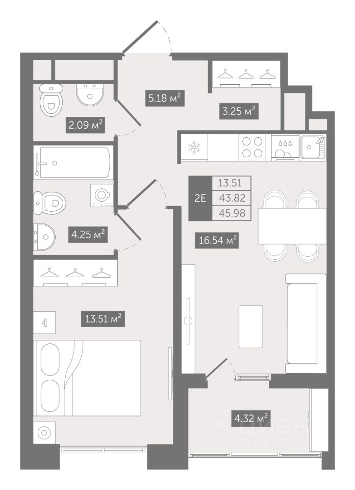 Прямая продажа от застройщика — только в этом месяце. 1-к квартира в клубном доме N8 на 6-м этаже. Общая площадь 45,98. Без отделки.