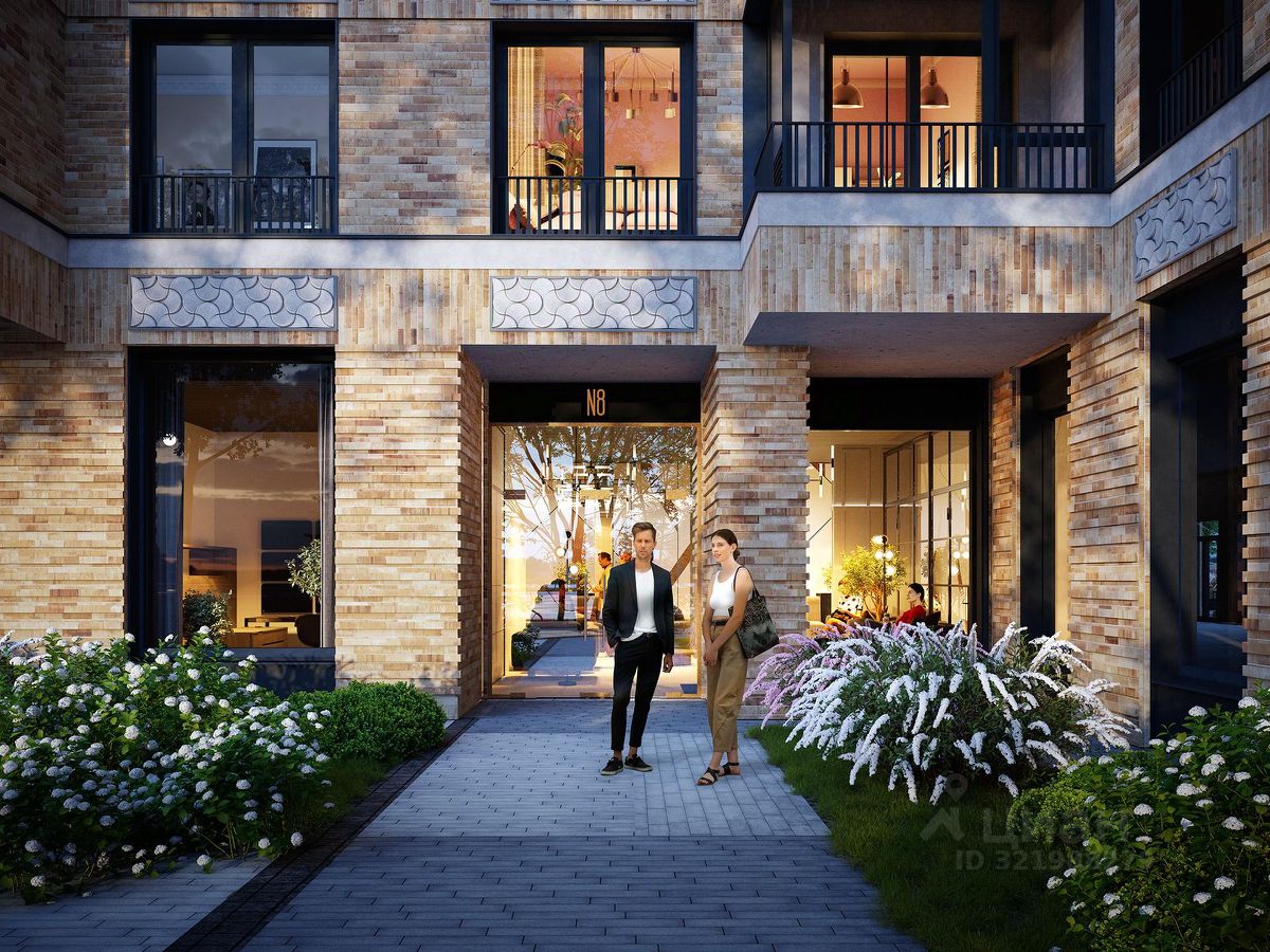 В облике дома отражены характерные черты петербургской исторической архитектуры: фактурная кирпичная кладка песочных оттенков, декоративные вставки и разностилевое остекление. В клубном доме N8 небольшое количество квартир — всего 281, от трех на этаже. Это позволило создать атмосферу приватности и камерности, а еще — воплотить замысел архитекторов, стремившихся наполнить дом квартирами с панорамными видами на город.
