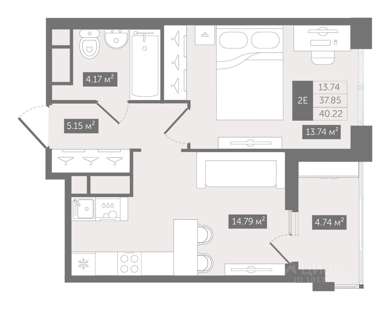 Прямая продажа от застройщика — только в этом месяце. 1-к квартира в клубном доме N8 на 8-м этаже. Общая площадь 40,22. Без отделки.