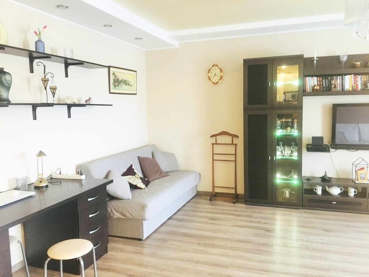 Две изолированные комнаты - спальня с окнами во двор и большая гостиная с эркером - окна на детскую площадку. Квартира полностью оснащена мебелью: 1 большая 180x200 удобная двуспальная кровать с прикроватными тумбочками и светильниками, телевизор смарт-ТВ. Два удобных двуспальных дивана в гостиной, а также мебельная горка из бамбука со светящейся витриной и книжными полками, рабочий стол с ящиками и настольной лампой, большой телевизор с плоским экраном, кабельное ТВ- более 900 каналов, быстрый Wi-Fi. , Полностью оборудованная кухня со стеклокерамической сенсорной плитой и духовкой, раковина со встроенным краном для фильтрованной воды, вся необходимая кухонная утварь. Санузел раздельный - подвесной унитаз с инсталляцией, в нише - водонагреватель, стиральная машина, сушилка и гладильная доска. Есть гардеробная с полностью зеркальными раздвижными дверцами в прихожей, и в спальне-большой 4-хдверный шкаф-купе полностью оборудованный для хранения предметов гардероба.