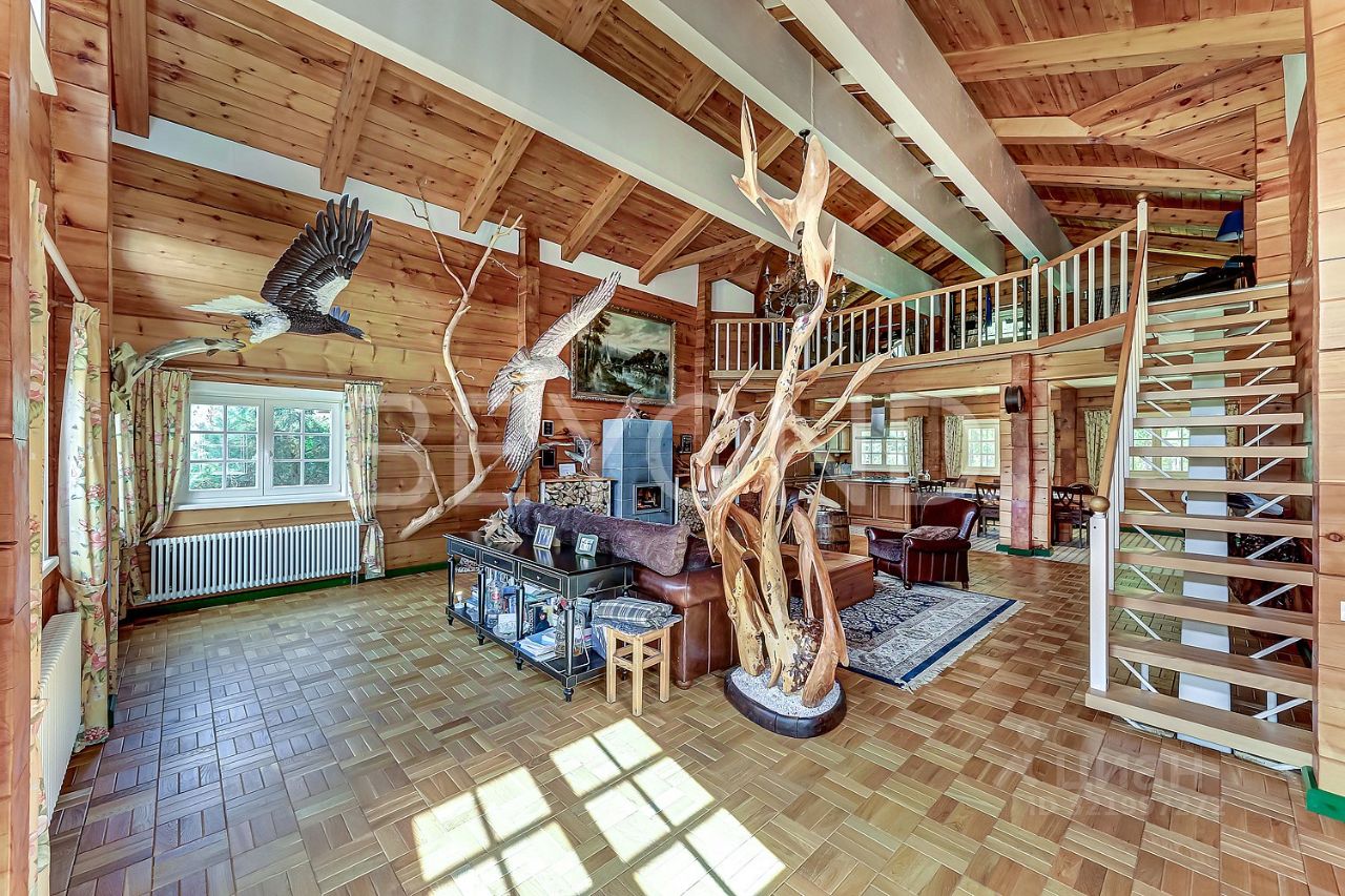 Предлагается к продаже усадьба, расположенная на участке площадью 1,1 га. Основной дом 246 кв. м из цельного бруса особо ценной породы алтайского кедра (400 мм / 220 мм). Древесина особо ценной породы обладает уникальными целебными свойствами, долговечностью, устойчивостью к гниению и старению. Благоприятно влияет на общее состояние организма, улучшая самочувствие и укрепляя иммунитет. Дом, его внутреннее пространство и интерьеры спроектированы и реализованы художником и скульптором с международным признанием. Высокие потолки. На первом этаже - просторная гостиная высотой 6 метров с примыкающей современной кухней-столовой. Четыре спальни, два санузла, финская сауна, гардеробные. На мансардном этаже пространство свободного назначения.