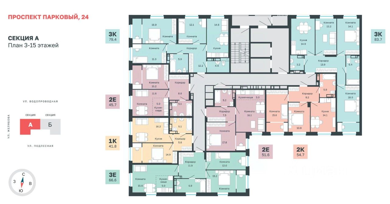 ''Дом Учителя на Парковом''. ДОМ БОЛЬШИХ ПЕРЕМЕН! Современный многоквартирный дом комфорт-класса в микрорайоне Парковый. Адрес дома: Проспект Парковый, 24. Одно из ключевых преимуществ дома — его расположение в ЦЕНТРЕ Микрорайона Парковый. Удобный, зелёный и спокойный семейный район с развитой инфраструктурой и отличной транспортной доступностью. В пешей доступности находятся школы, детские сады, магазины и медицинские учреждения. Здесь легко добраться в любую часть города благодаря выездам на объездные магистрали. ДОМ БОЛЬШИХ ПЕРЕМЕН Мы любим перемены — особенно те, что делают жизнь ярче и комфортнее. Квартира в этом доме станет началом новой, счастливой главы в вашей жизни. Современная архитектура Технология: монолитный каркас. Урбанистический стиль, яркий, статный, с акцентами современного дизайна. Сквозные входы, как со стороны двора, так и в коммерческие помещения. Круглый год в окружении природы Дом расположен всего в 100 метрах от Черняевского леса, и недалеко от набережной реки Мулянка. Прогулки, отдых и занятия спортом на свежем воздухе. В 5 минутах ходьбы от дома расположен городской парк культуры и отдыха ''Балатово''. Уютные семейные квартиры В доме 2 секции: А и Б. Всего 238 семейных квартир площадью от 41.8 м² до 84.5 м². Свободные планировки-трансформеры позволяют изменить расположение внутренних перегородок и создать пространство, полностью соответствующее индивидуальным предпочтениям и ожиданиям. В квартирах предусмотрена повышенная звуко- и теплоизоляция, установлены современные инженерные коммуникации. Используются звукоизолирующие строительные материалы, а также шумозащитные окна с вентиляцией Airbox — всё это делает квартиры теплее, тише и энергоэффективнее. 2 варианта отделки: