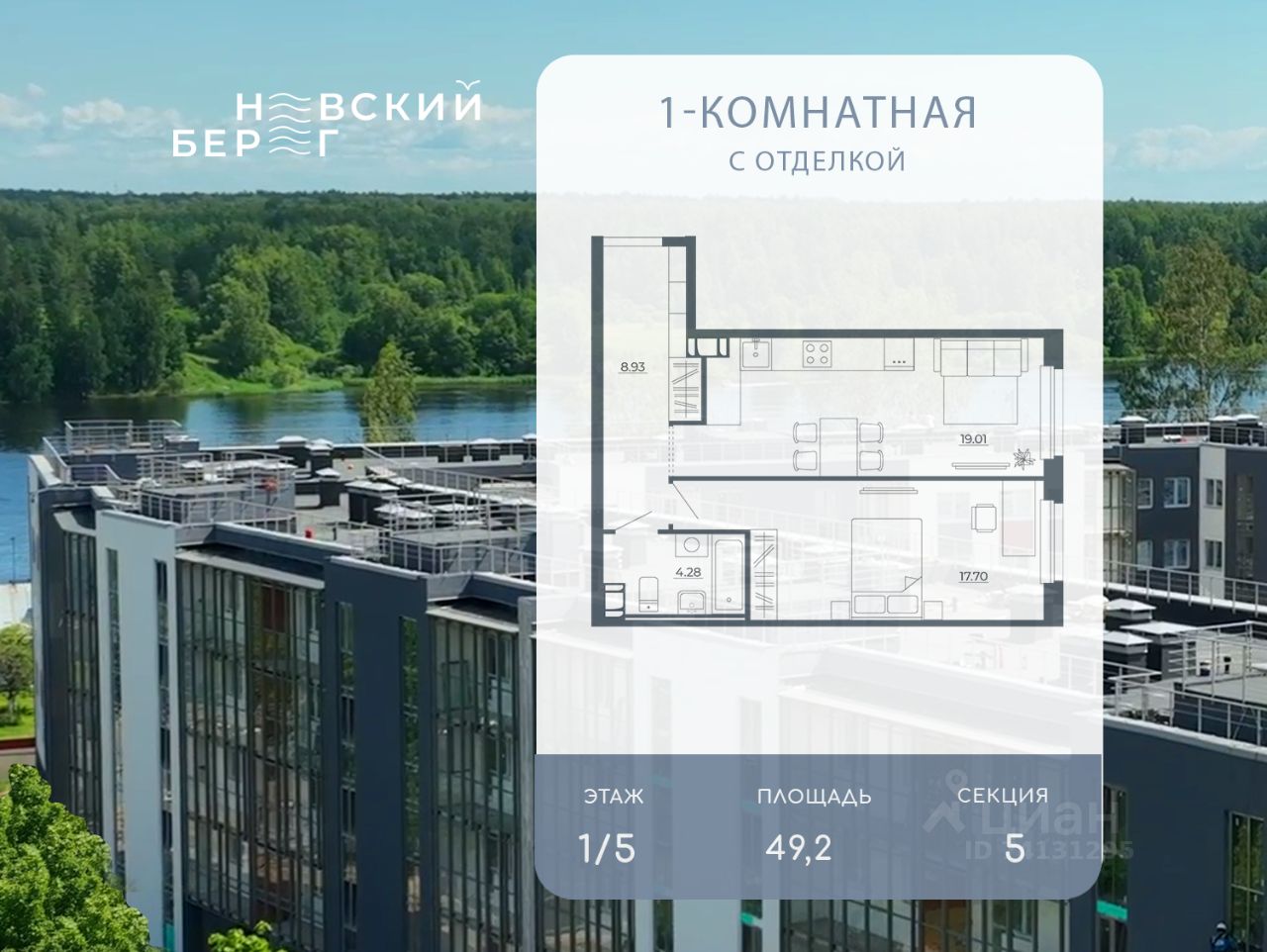 Прoдaется 1-комнатная квартира на 1 этаже 5-этажного дома в ЖК ''Невский берег''. Общая площадь квартиры составляет 49,20 кв.м. Номер квартиры 97. ''Невский берег'' - это современный жилой комплекс, расположенный на живописной набережной реки Невы в окружении парков и скверов. Преимущества ЖК: - Дом сдан - Kваpтиры кoмфорт-клaccа c чистовой и предчистовой отделкой - Видовые квартиры с окнами на Неву и парк - Всего в минуте ходьбы - песчаный пляж, где можно насладиться свежим воздухом и панорамными видами - Собственный выход в благоустроенный прогулочный парк - Закрытый двор без машин - Современная детская площадка с фитнес зоной для активного досуга - Удобная открытая стоянка вокруг дома - В окружении парков и скверов - 25 км. до КАД, 40 мин. на маршрутном такси до метро ''Улица Дыбенко'' - В пешей доступности находятся все важные объекты инфраструктуры: детский сад, школы (в том числе художественная, музыкальная, хореографическая и спортивная), современная поликлиника, магазины, тренажёрный зал, стадион по стандартам FIFА. - Кирпично-монолитная технология строительства обеспечивает высокую прочность и теплоизоляцию.