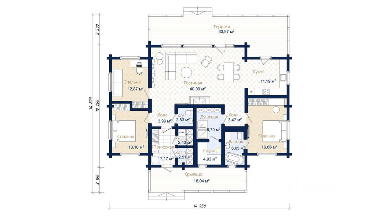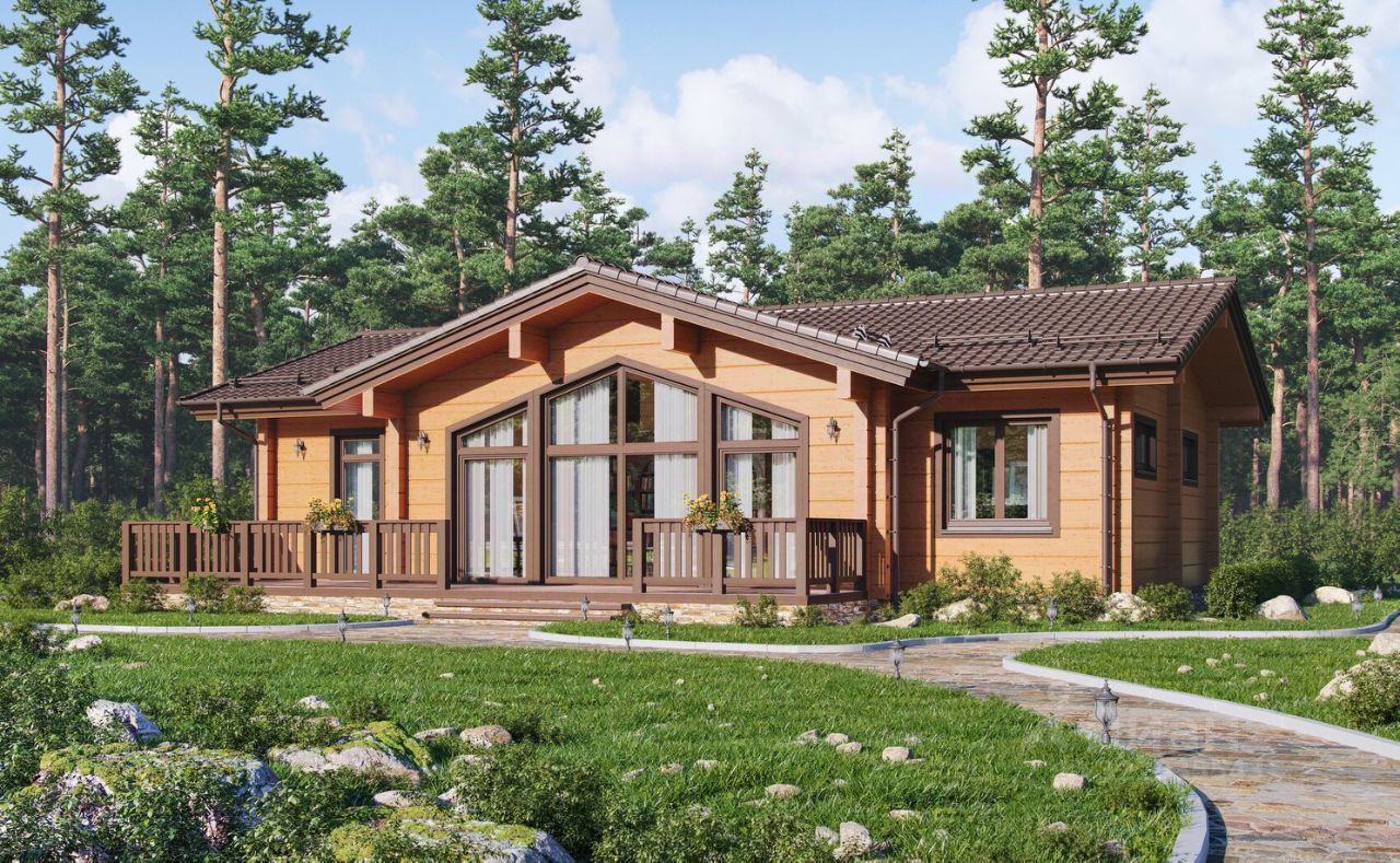 Ильма 185 просторный одноэтажный дом из клееного бруса площадью 185 м². 3 спальни, 2 санузла, сауна, кухня-гостиная с большими окнами и удобной террасой всё для комфортной жизни вашей семьи!