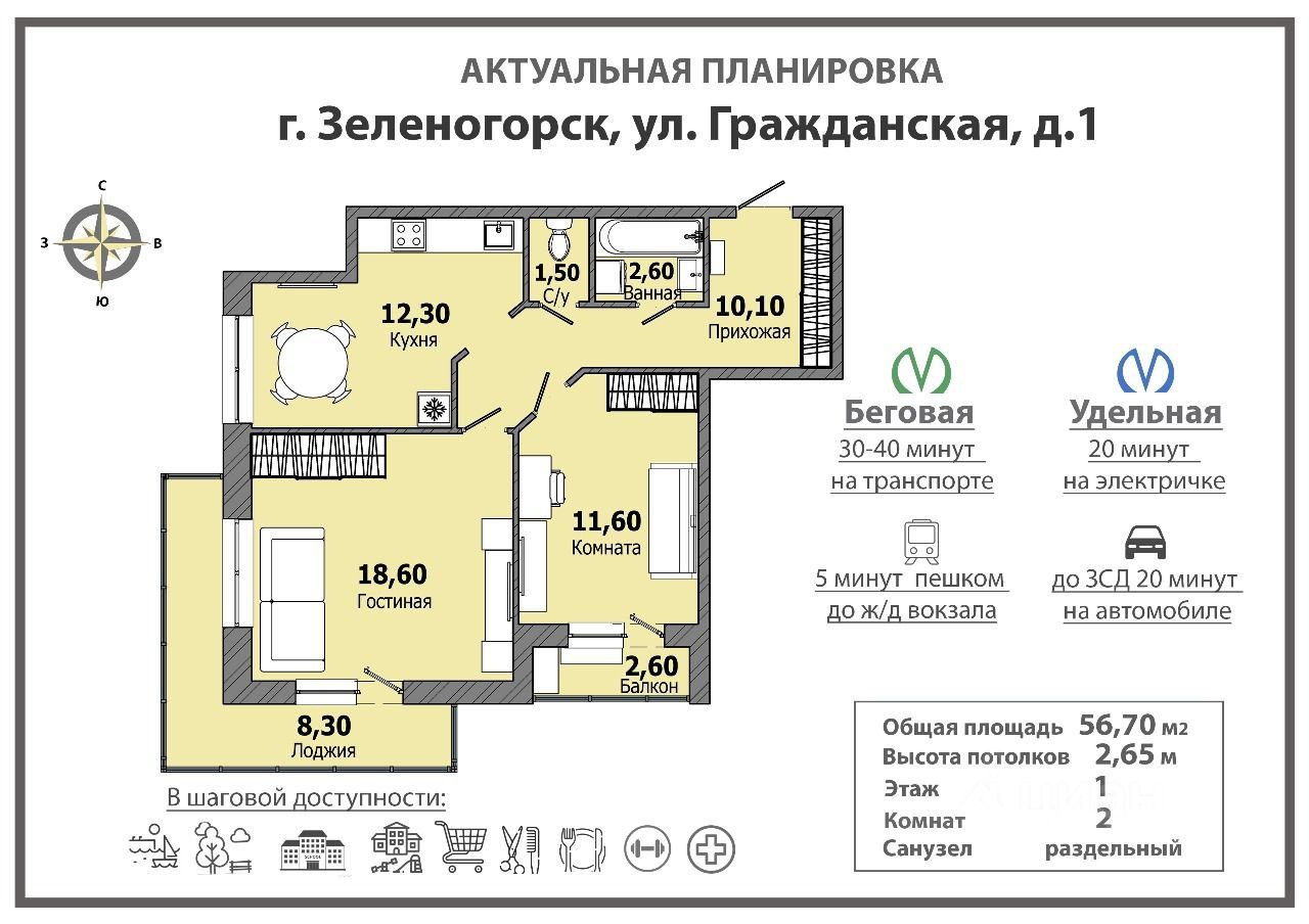 О КВАРТИРЕ: - Общая площадь: 56,7 кв.м, что обеспечивает достаточно пространства для комфортного проживания. - Жилая площадь: 30,2 кв.м — две уютные комнаты, где будет замечательно провести время с семьей. - Кухня: 12,3 кв.м, идеально подходит для создания кулинарных шедевров. - Высота потолков: 2,65 м, что добавляет ощущение простора. - Раздельный санузел с ванной и качественным кафелем. - Полы из ламината и керамогранита — прочные и стильные. - Окна ПВХ обеспечивают отличную тепло- и звукоизоляцию. - Лоджия площадью 8,3 кв.