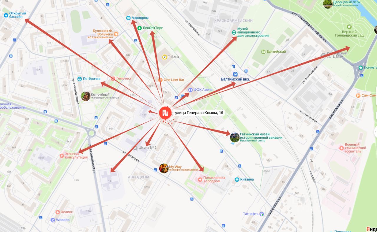 В шаговой доступности от дома расположена вся необходимая инфраструктура для комфортной жизни: детский сад #31 и школа #2, поликлиника и современные медицинские центры, продуктовые магазины и современные булочные, кафе и рестораны. Рядом с домом строится новый сквер, который станет данью уважения сотрудникам МЧС. Для тех, кто поддерживает здоровый образ жизни, рядом с домом расположены спортивный комплекс ''ФОК Арена'' и бассейн ''Атлантика''.