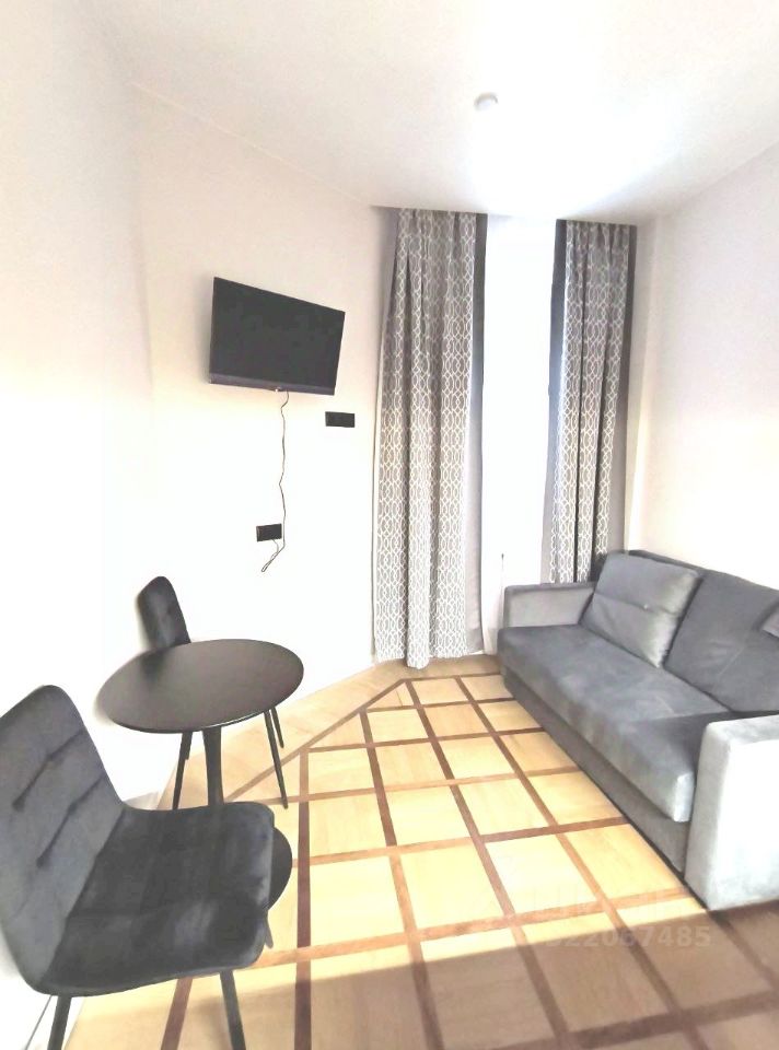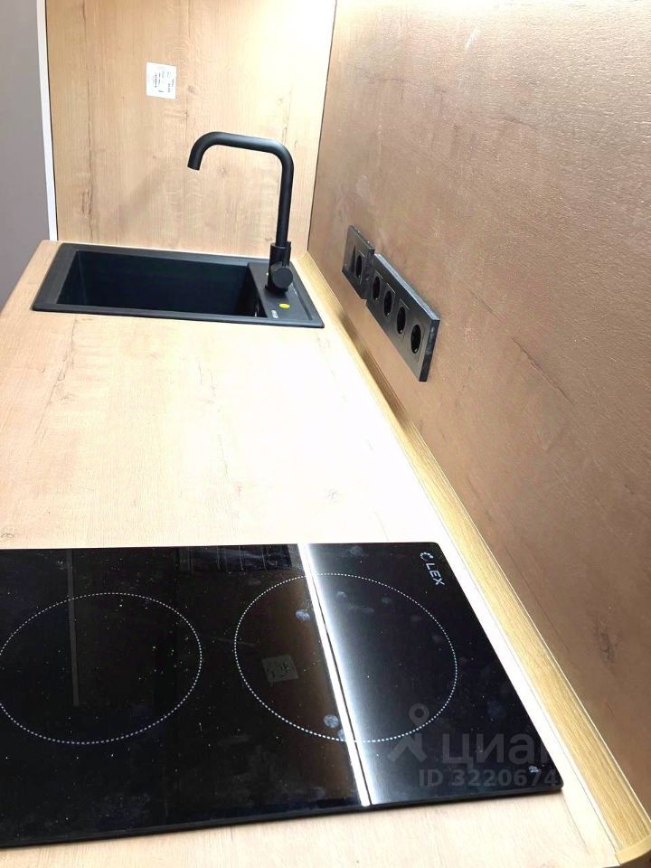 Студия ПОЛНОСТЬЮ МЕБЛИРОВАНА: раскладной диван, холодильник, эл.плита, телевизор, стиральная машина. Ванная с современной душевой кабиной. Вся техника и мебель новая, ВЪЕЗЖАЙ И ЖИВИ.