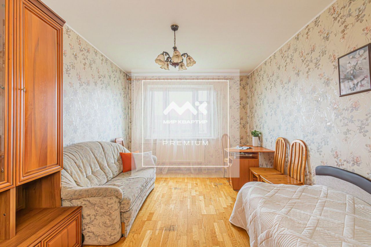 В квартире выполнен косметический ремонт, в комнатах на полу паркетная доска, в кухне и коридоре плитка с теплым полом. Деревянные межкомнатные двери.