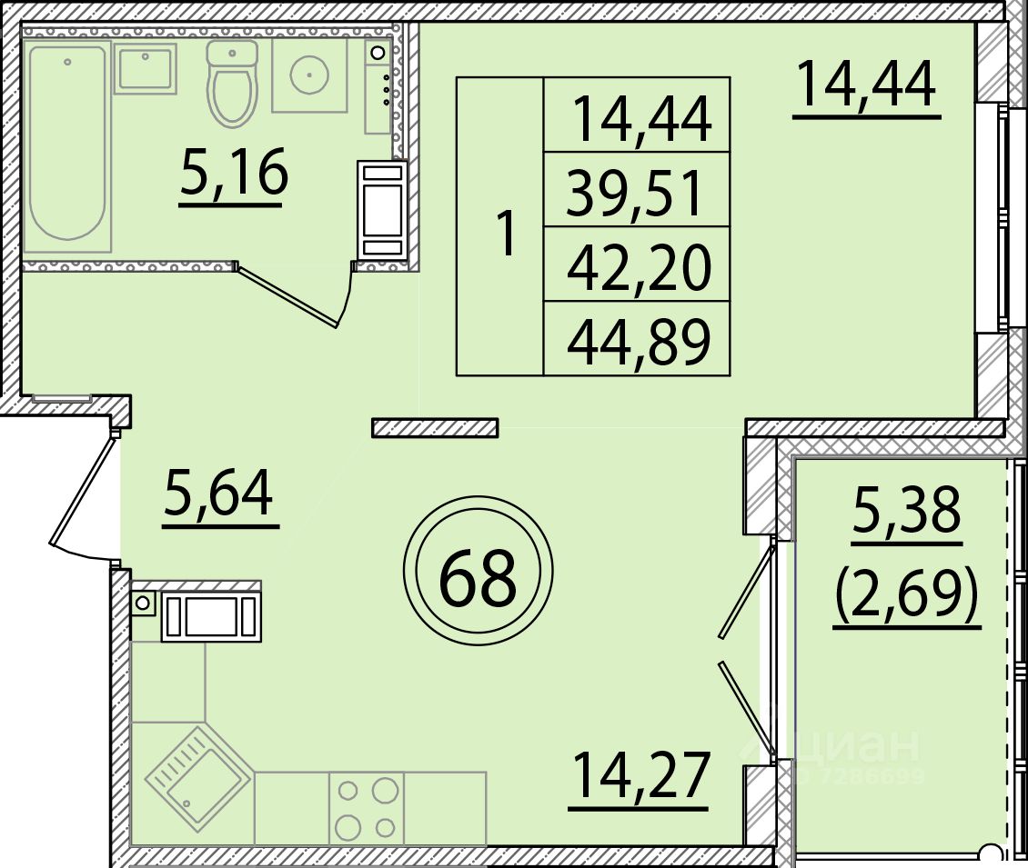 продам 1-к, Соколиная, 4 корп. 18 573 670 ₽