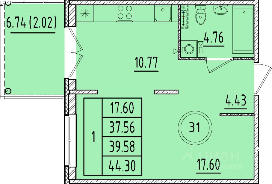 Общая площадь37,56 м2