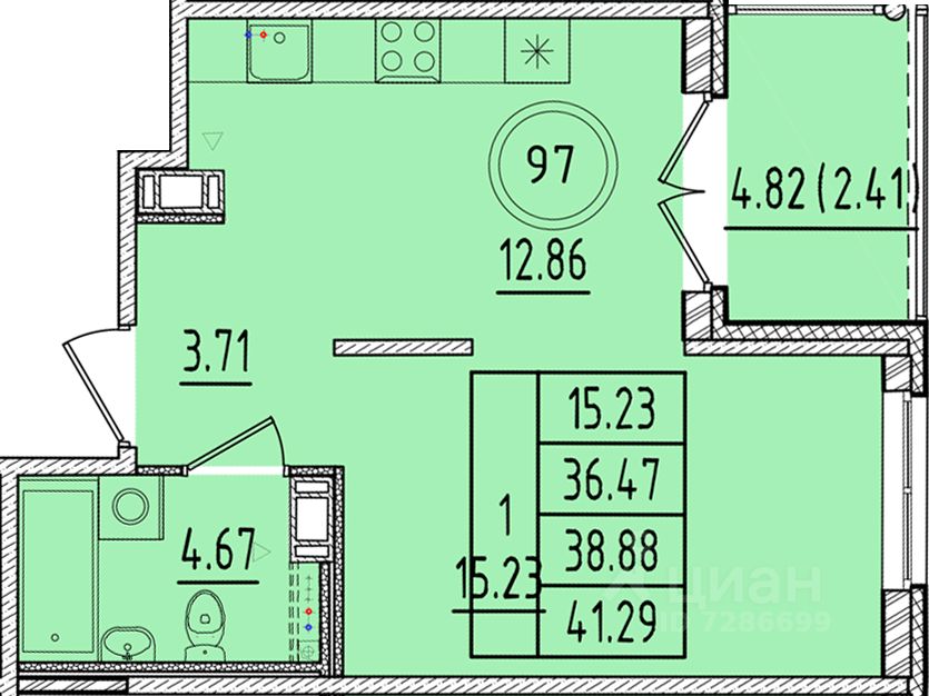 Общая площадь36,47 м2
