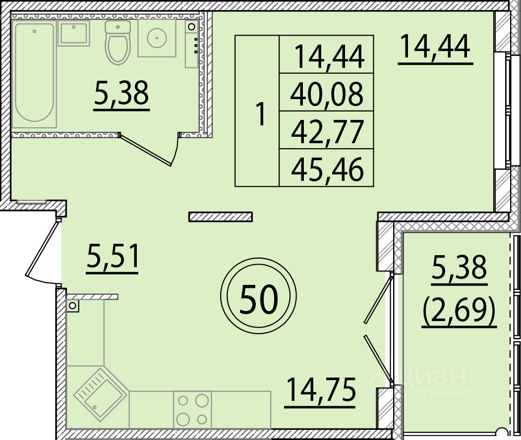 Жилая площадь14,4 м2