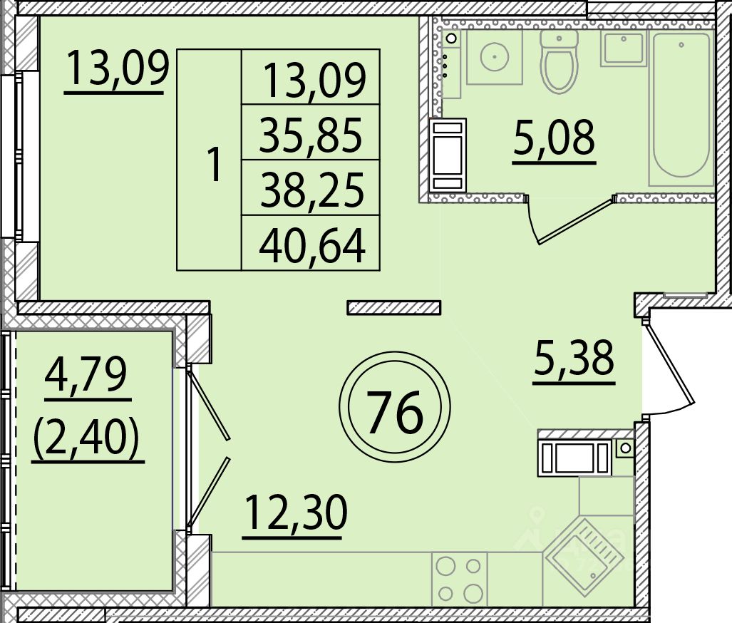 Жилая площадь13,1 м2