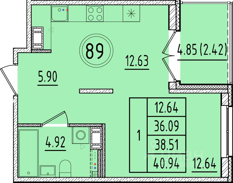 Общая площадь36,09 м2