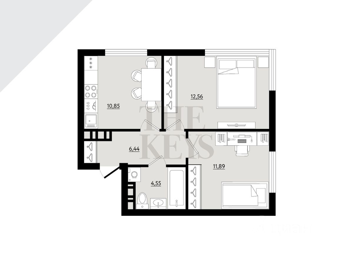 Параметры объекта: - Чистовая отделка ''Dark'' дает возможность сразу въехать в квартиру - Увеличенные окна на 2 стороны - Просторная кухня-гостиная для встречи с самыми близкими