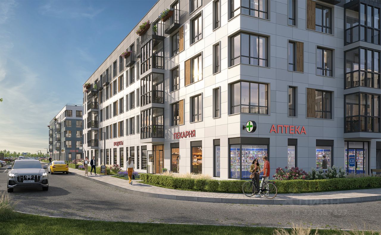Инфраструктура и транспортная доступность: - Дворы закрыты для машин - Пешеходный бульвар с play hub и местами отдыха для детей и взрослых, не пересекающийся с проезжей частью - Безбарьерная среда для легкого доступа в комплекс - 2 детских сада с бассейнами на территории комплекса - Собственная школа на 825 мест с двумя бассейнами - Для автомашин предусмотрены отдельно стоящий 5-ти этажный паркинг на 958 машино-мест, две подземные парковки на 367 машино-мест и наземные парковочные зоны по внешнему периметру микрорайона - В пешей доступности имеется все необходимое — продовольственные магазины, медицинские и образовательные учреждения, аптеки, рестораны и кафе - Поблизости расположены дворцово-парковые ансамбли Пушкина, Павловска, Петергофа, Гатчины, Ломоносова, а также вся торговая и развлекательная инфраструктура: ТК Лето, Outlet Village Pulkovo, Пулково-3, гипермаркеты Лента, Окей, Metro