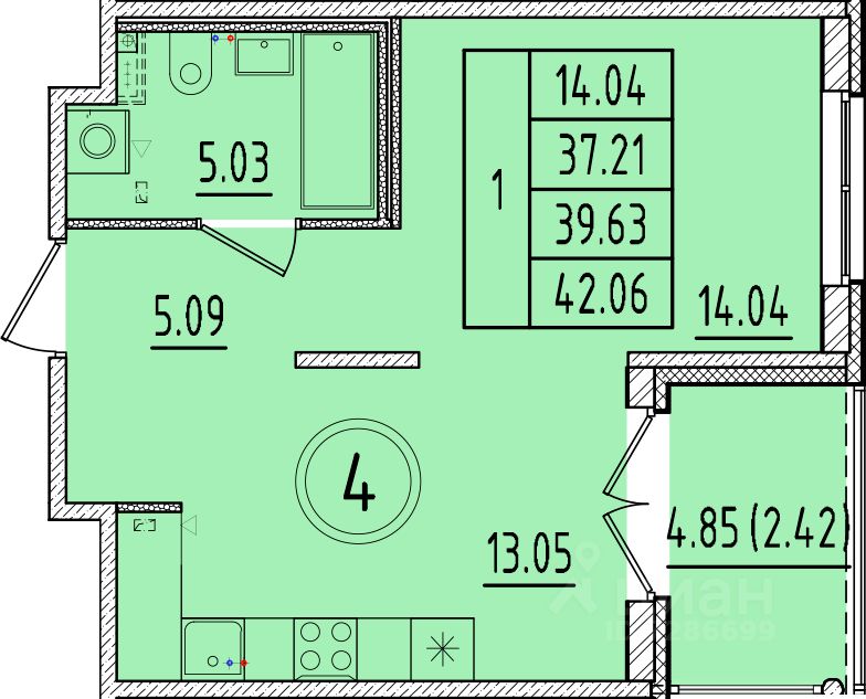 Общая площадь37,21 м2