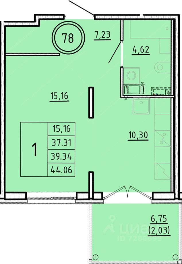Общая площадь37,31 м2