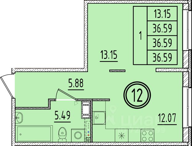 Общая площадь36,59 м2