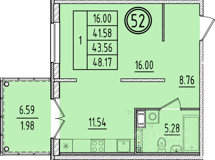 Общая площадь41,58 м2