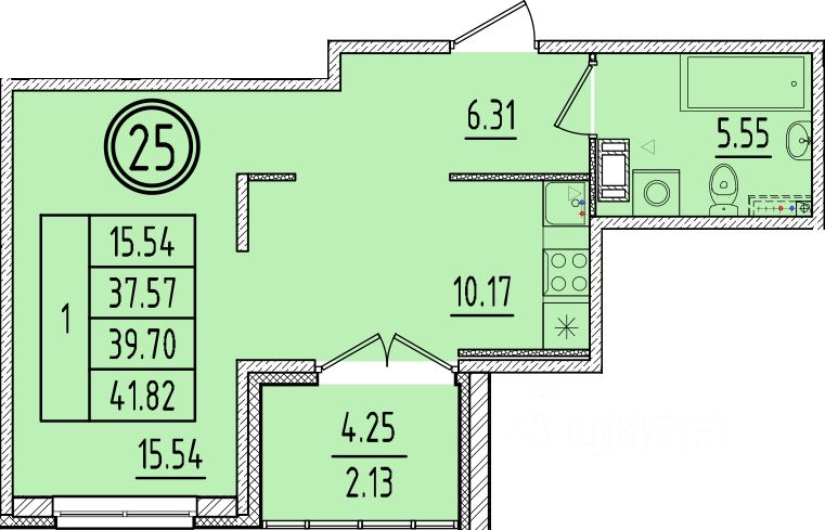 Общая площадь37,57 м2