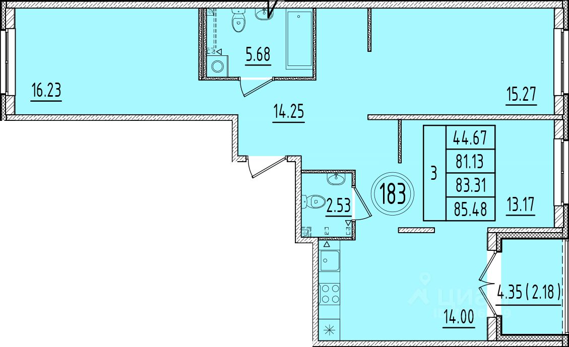 Общая площадь81,13 м2