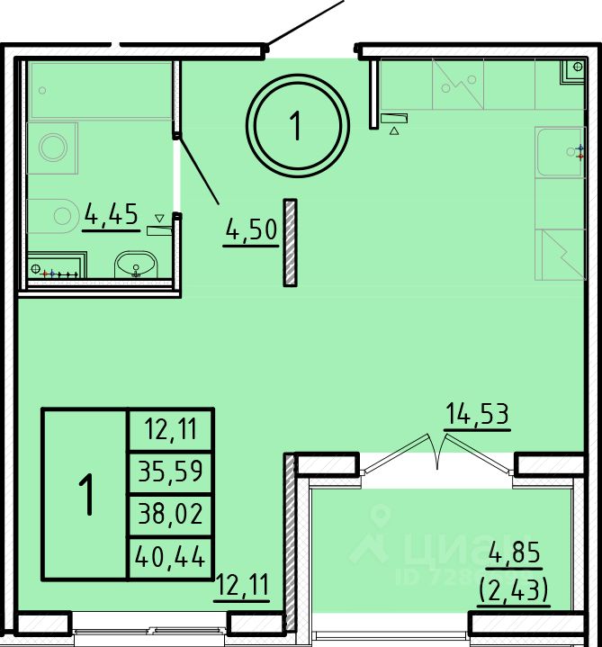 Жилая площадь12,1 м2