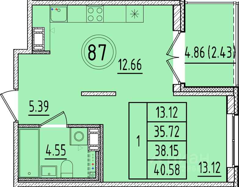 Общая площадь35,72 м2