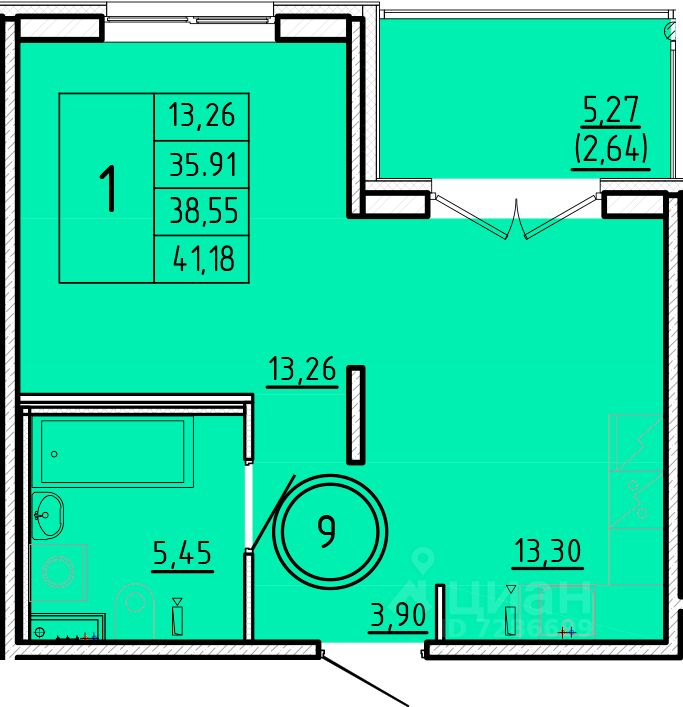 Общая площадь35,91 м2