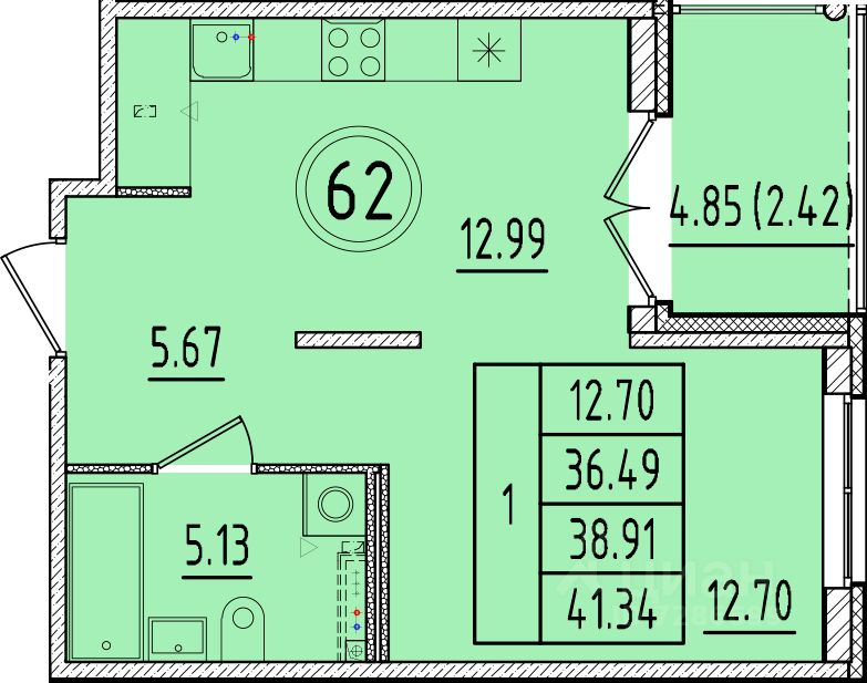Общая площадь36,49 м2