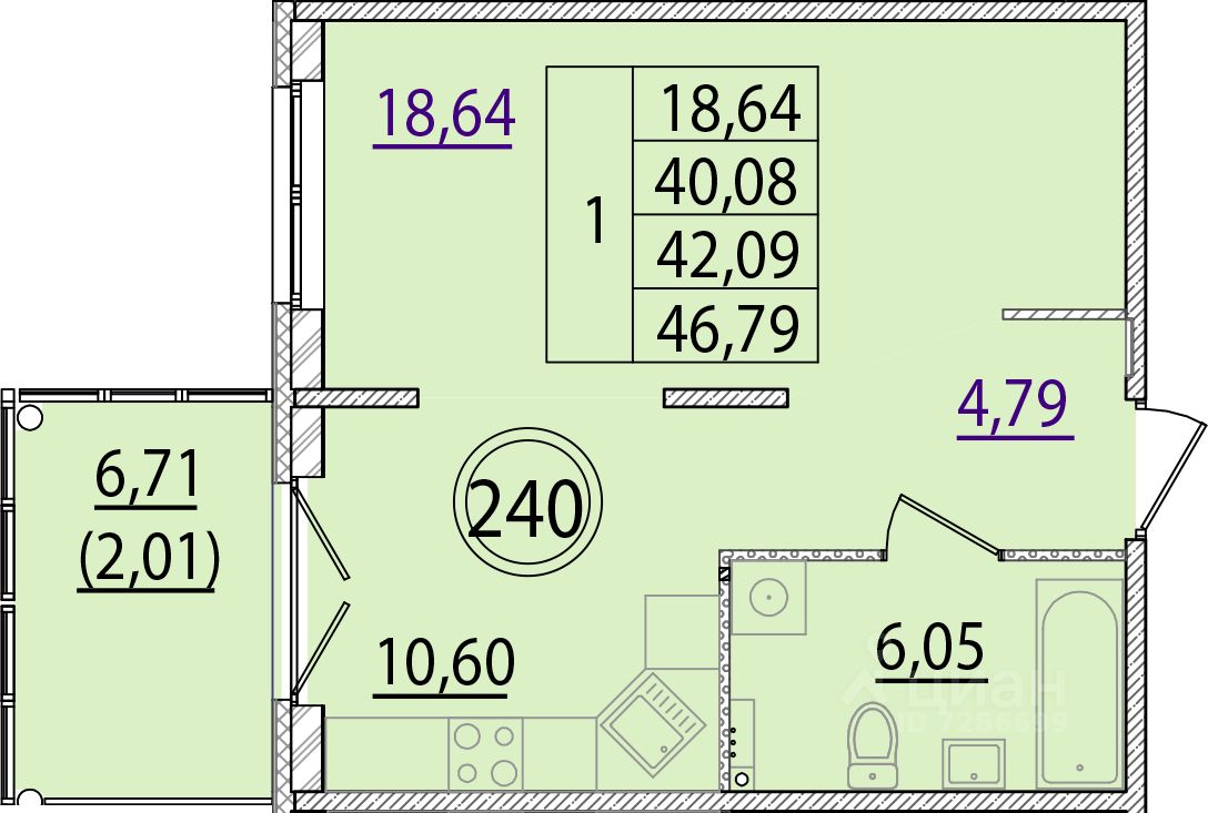Общая площадь40,08 м2