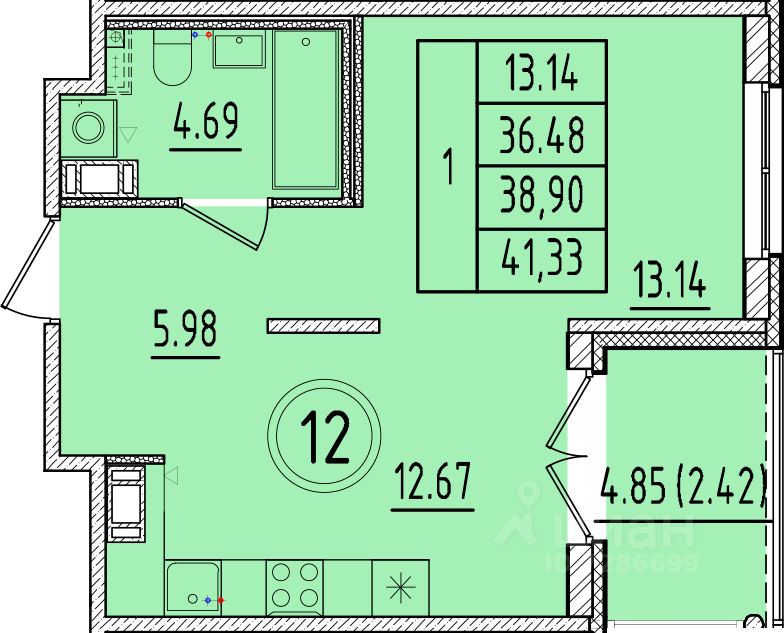 Кухня12,7 м2