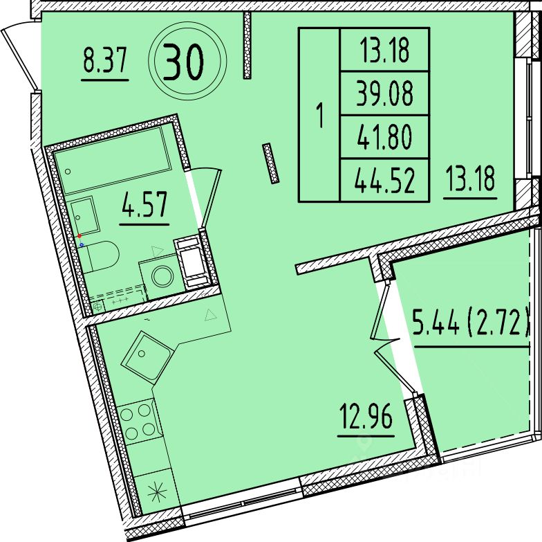 Общая площадь39,08 м2