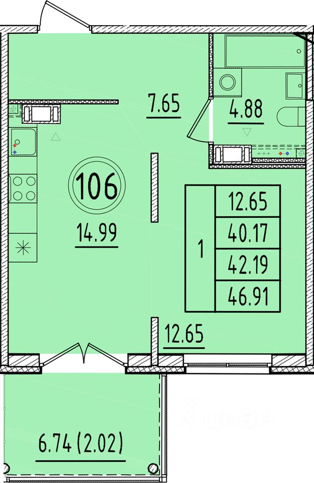 Общая площадь40,17 м2
