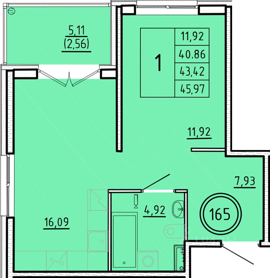 Жилая площадь11,9 м2