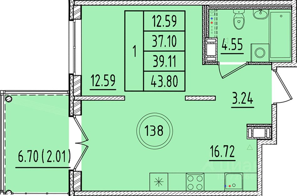 Общая площадь37,1 м2