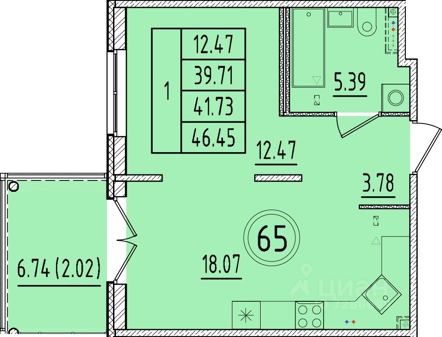 Общая площадь39,71 м2