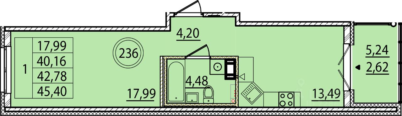 Общая площадь40,16 м2