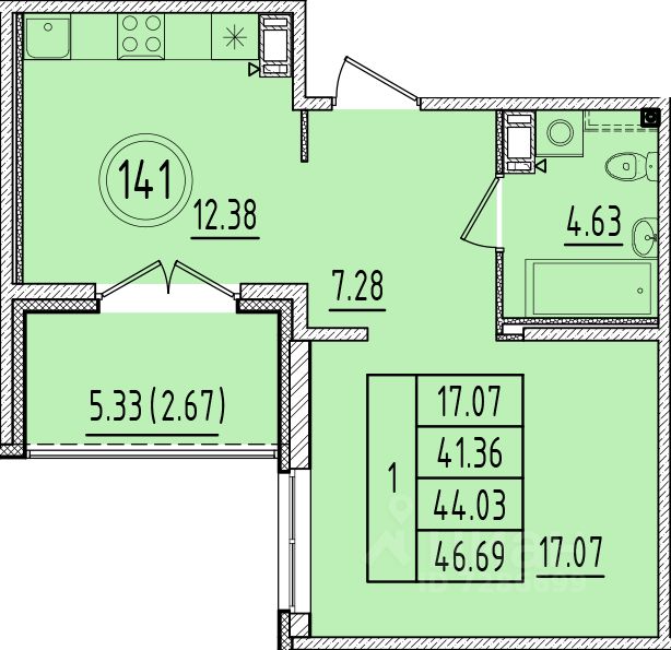 Общая площадь41,36 м2