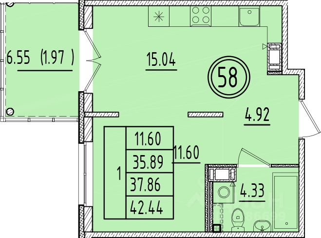 Жилая площадь11,6 м2