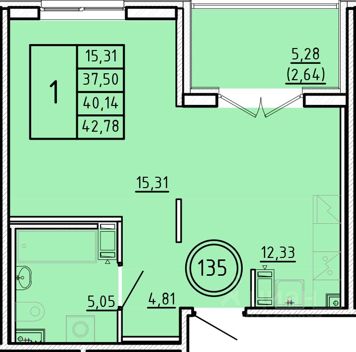 Жилая площадь15,3 м2