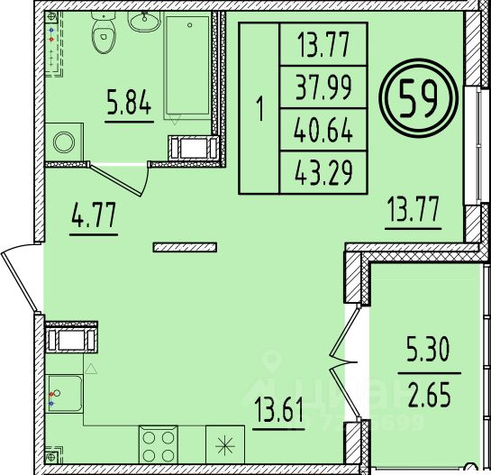 Общая площадь37,99 м2