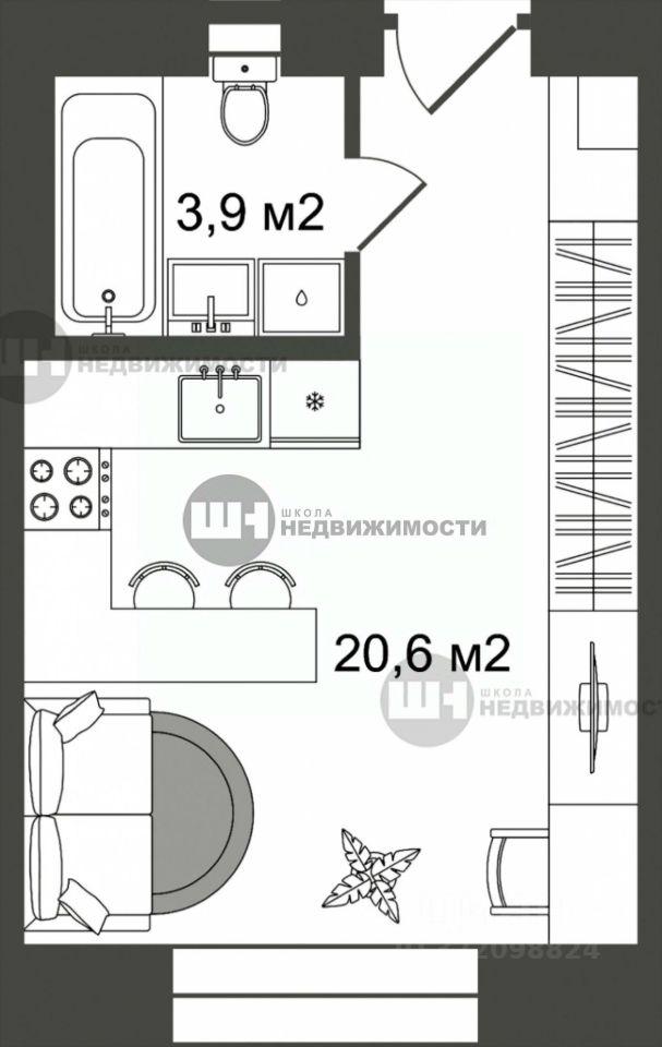 В ПРОДАЖЕ студия 24,5 м² с ЧИСТОВОЙ ОТДЕЛКОЙ в новом ЖК
